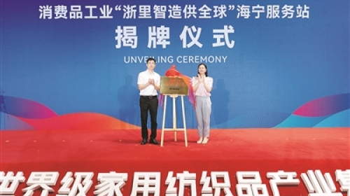 海宁中国家纺城国贸中心。消费品工业“浙里智造供全球”海宁服务站揭牌。记者 张世新 通讯员 陆凛 徐梦洁31万平方米的展区、2500余家参展企业……8月13日-15日,2023海宁中国·国际家用纺织品(秋季)博览会(简称海宁家博会)在海宁许村镇·海宁中国家纺城举行。本届海宁家博会以“智造·让家更美好”为主题,展品涵盖家纺装饰布、窗帘布、沙发布、窗纱、墙布、智能纺织机械设备、窗帘配饰、纺织原料、床上用品、整体家居软装、画稿及优秀设计作品等。其间,还有行业交流会、主题论坛活动等。作为全球纺织领域具有较高行业知名度和较大影